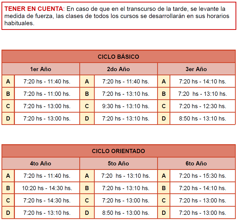 De 2° a 6° grado los docentes se adhieren, por tanto NO TIENE CLASES. – Turno Tarde: Adhesión total, por tanto NO HAY CLASES.