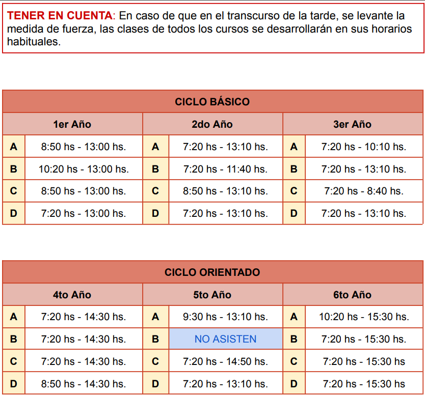 A continuación les comunicamos cómo será el horario de ingreso y de salida para cada curso: